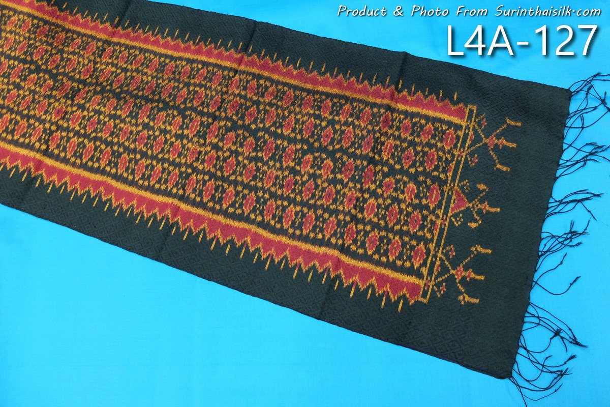 ผ้าพันคอไหมยกดอกลูกแก้วมัดหมี่