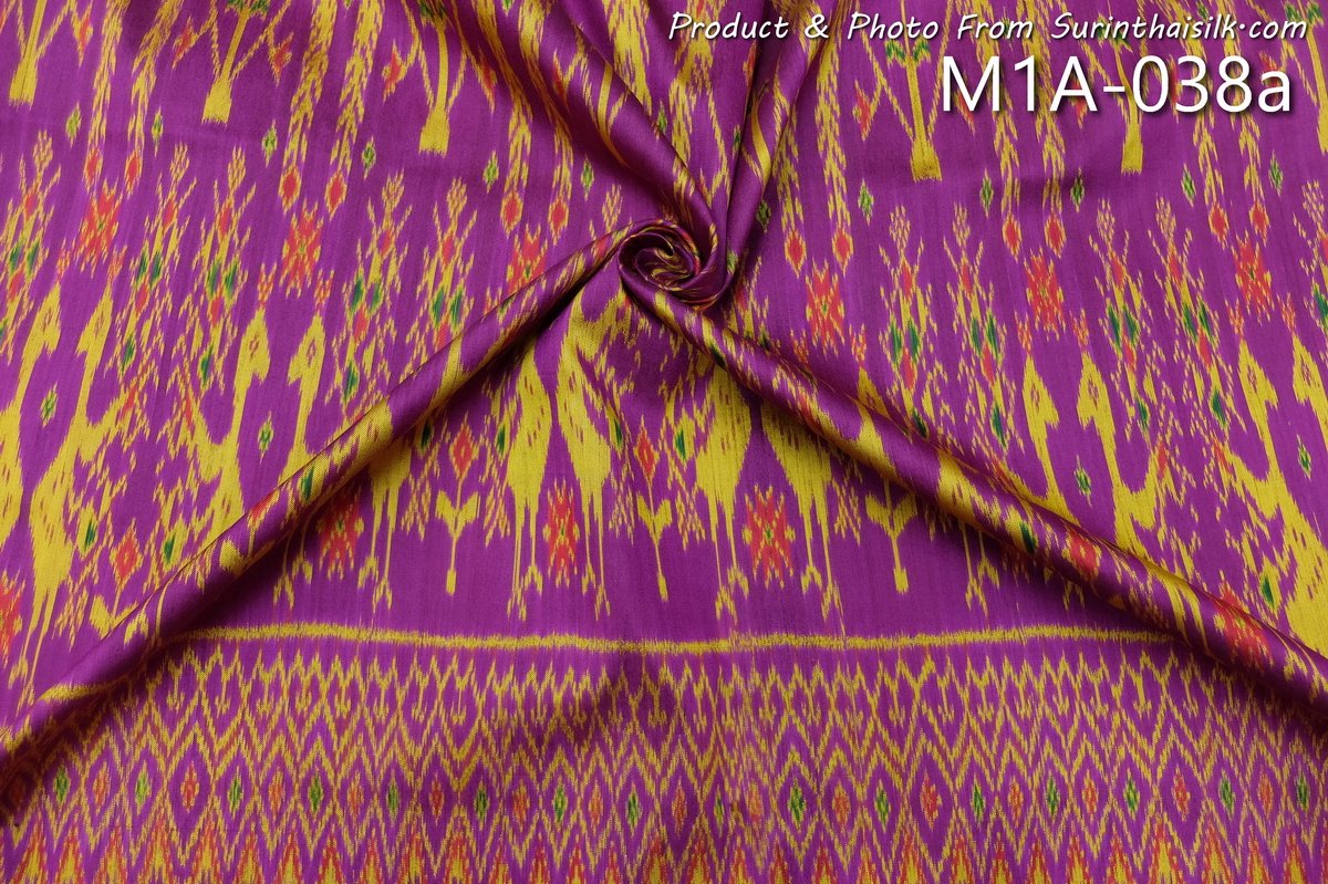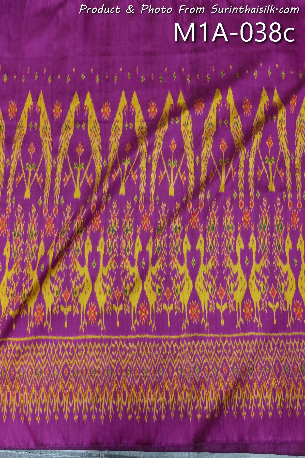 100% Thaisilk Mudmee Sacred animals - ผ้าไหมมัดหมี่ ลายสัตว์มงคล (นกยูง,ช้าง,ไก่,กวาง)