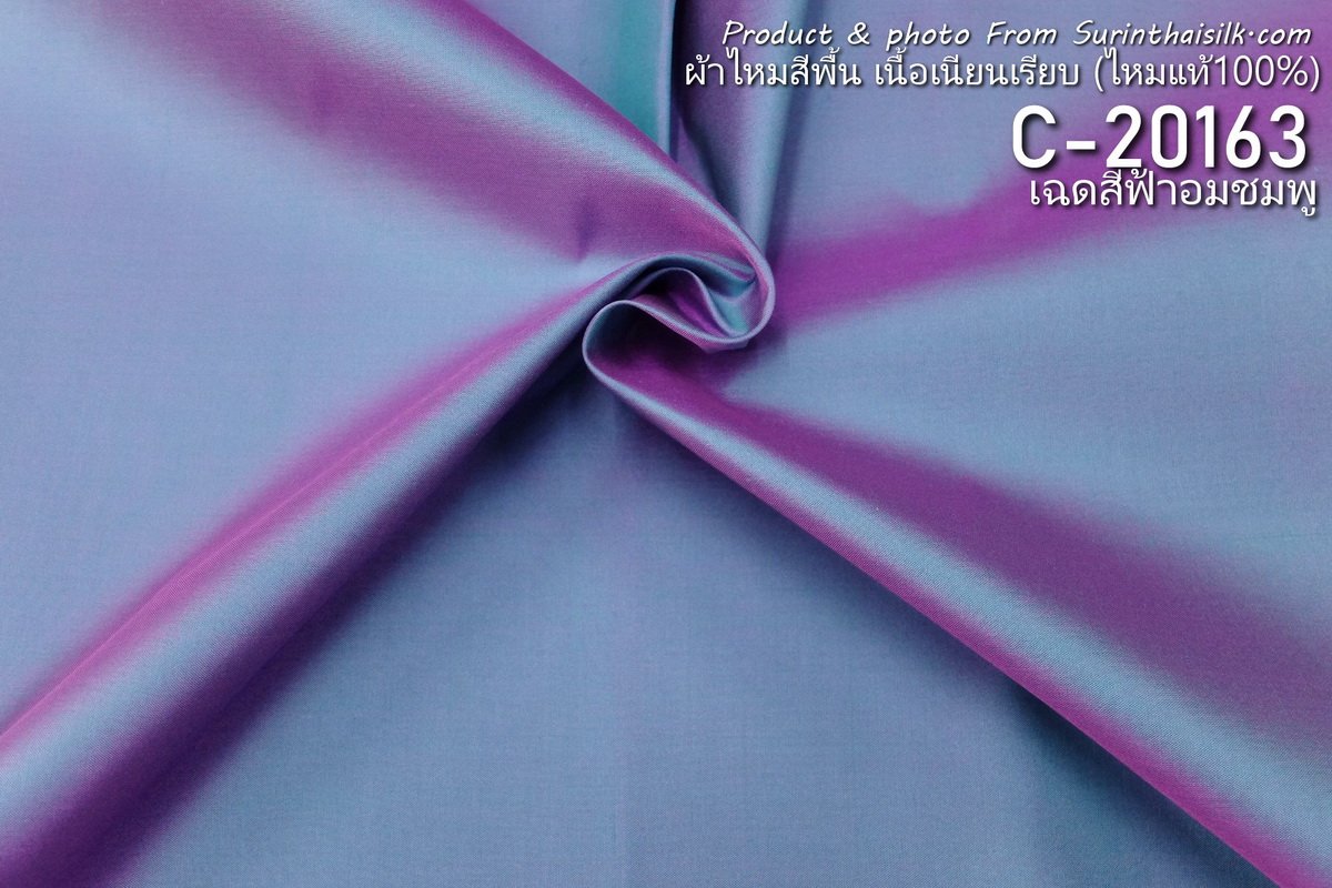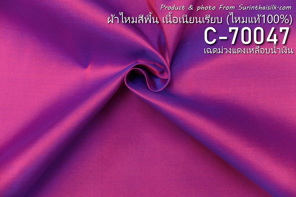 ผ้าไหมสีพื้นเนื้อเรียบมีลักษณะเงางามเนื่องจากทอด้วยไหมเส้นเล็ก