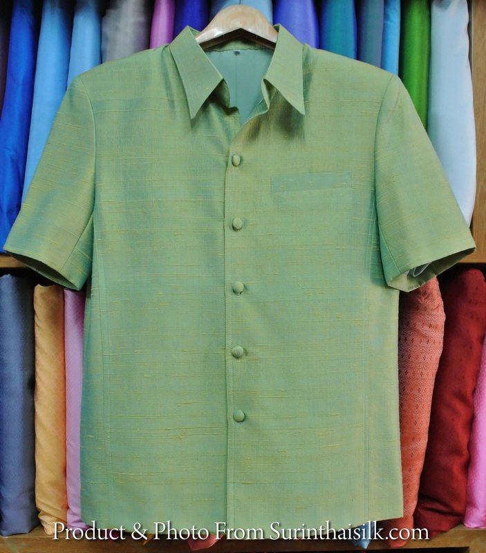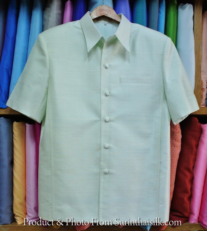 ลักษณะเฉพาะ: เป็นชุดซาฟารีที่ตัดจากผ้าไหมสีพื้นเนื้อเรียบและเนื้อหนาชนิดมีขี้ไหมหลากหลายสี