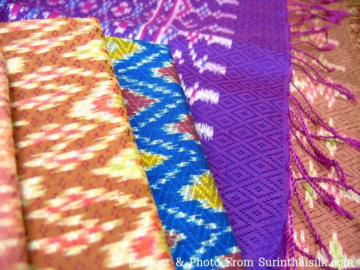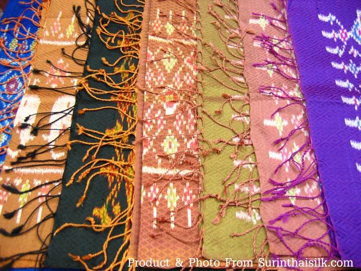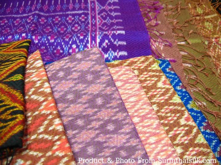 ผ้าพันคอไหมยกดอกลูกแก้วมัดหมี่
