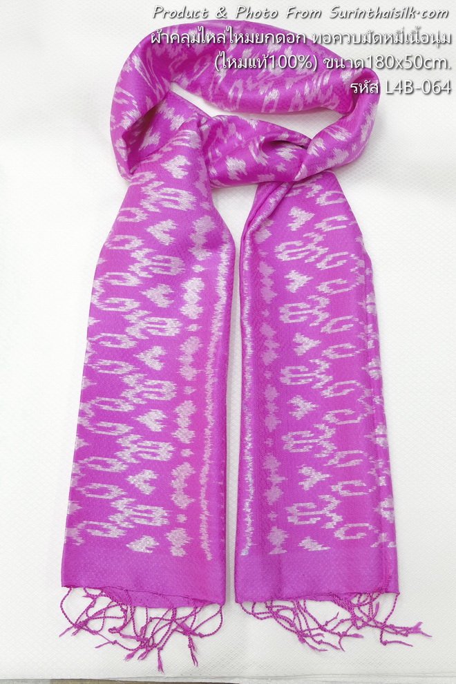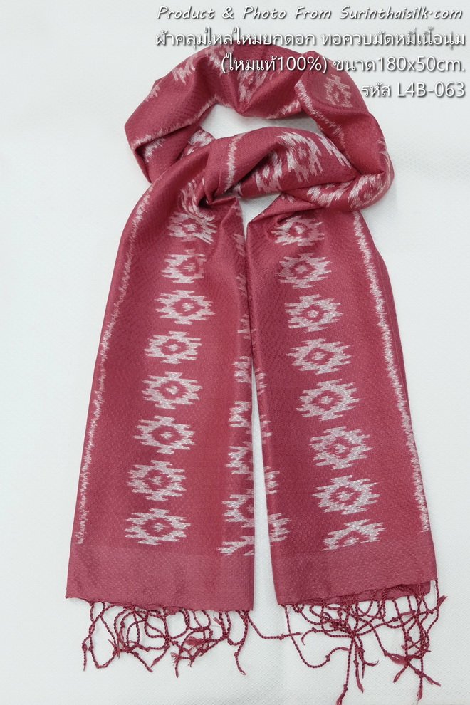 ผ้าพันคอไหมยกดอกลูกแก้วมัดหมี่