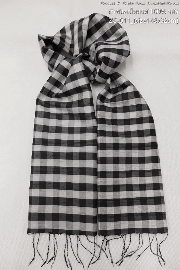 ลักษณะเฉพาะ : ผ้าพันคอไหมลายริ้ว และลายสก็อต ทอจากเส้นไหมแท้
