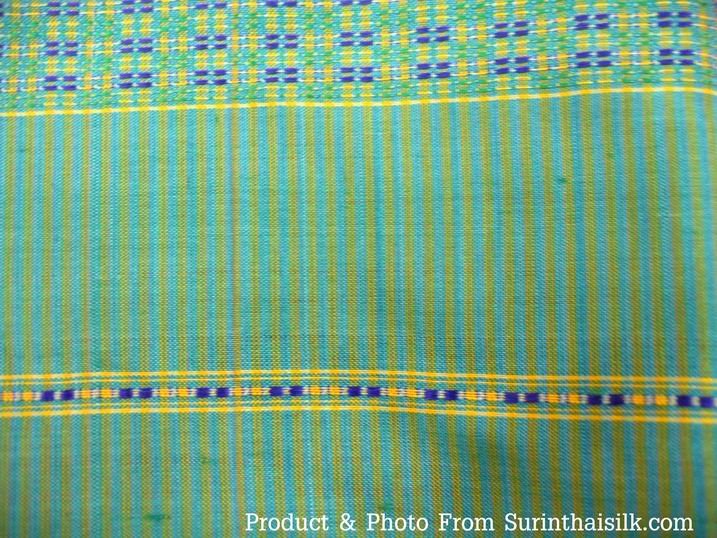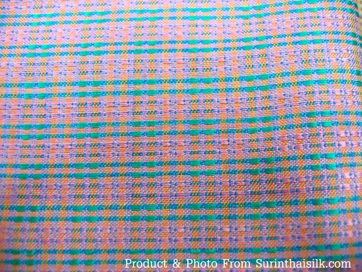 ทอยกดอกเป็นลายสี่เหลี่ยมสลับสีด้วยความปราณีต ทำให้ลายมีความโดดเด่นสวยงาม